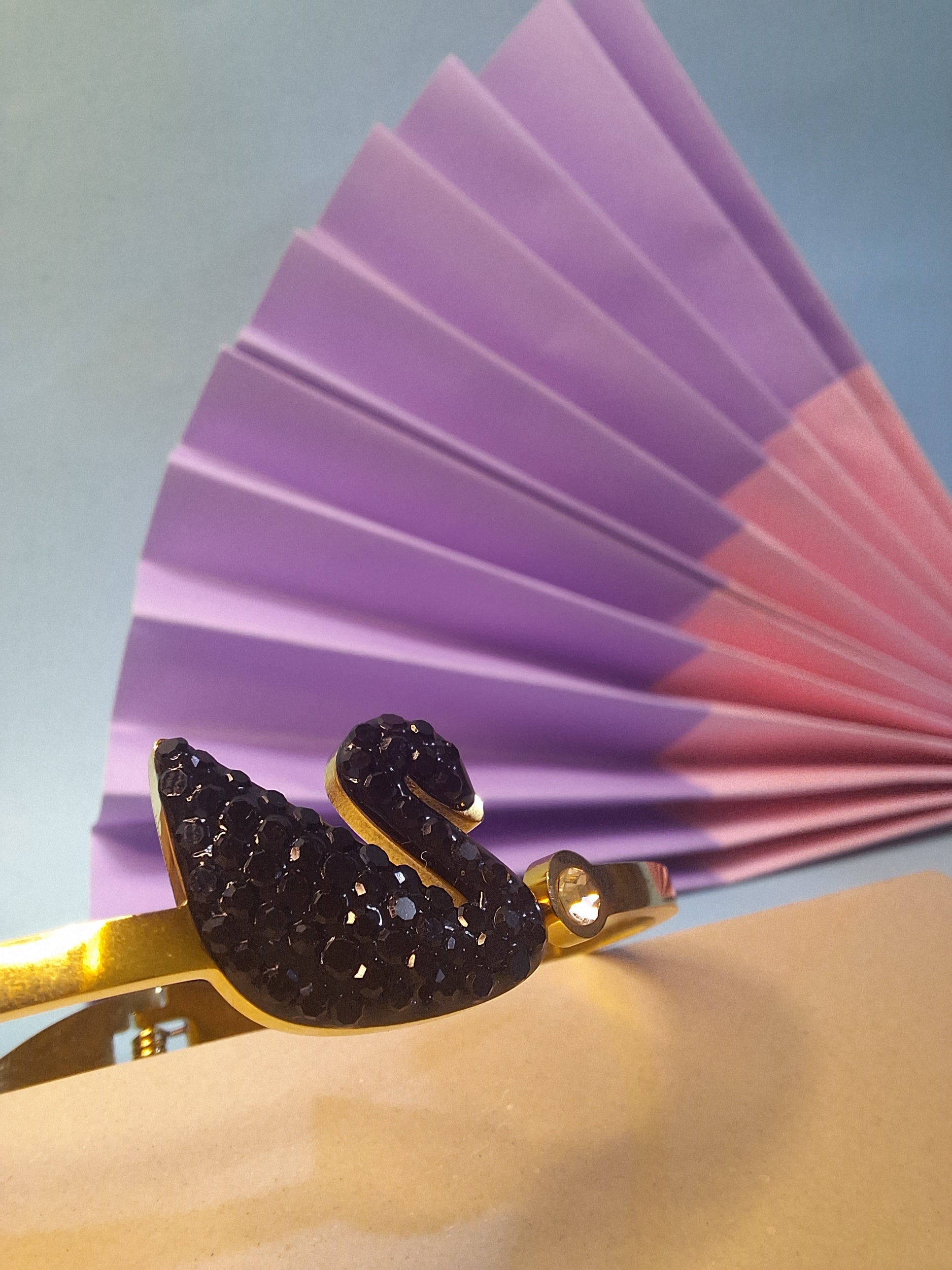 Stainless steel | Gold polish | Black crystal stones | Nickel-free | Anti-tarnish coating